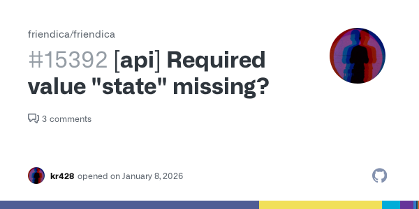 !Friendica Support Seeing https://github.com/friendica/friendica/issues/15392 with @Pachli (thanks @Kristian π thanks for reporting) and wondering, if state is not implemented according to what mastodon api is expecting, this would mean friendica will have trouble with any mastodon client, right?![[api] Required value](https://washington.communitynetwork.us/photo/preview/600/31011)